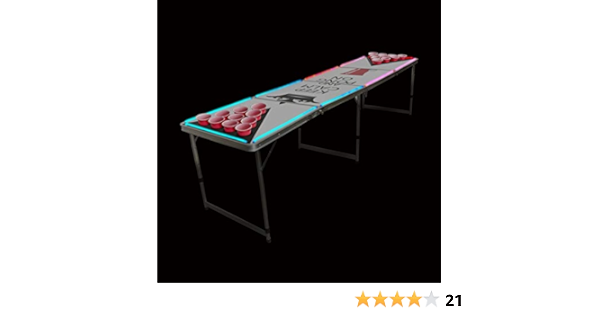 Amazon Com Pongbuddy Led Lights Beer Pong Table With Holes For Cups 8 Aluminum Portable Adjustable Folding Indoor Outdoor Tailgate Drinking Party Game Squad Keep Calm And Pong On 9 Sports